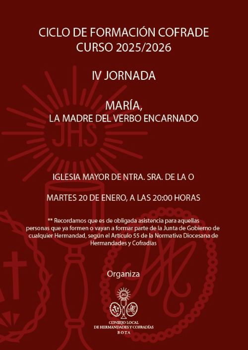 ROTA COFRADE.- Este próximo sábado 10 de enero, a las 19:00 horas, en la Casa de Hermandad de la Vera-Cruz (Calle Veracruz, 33), tendrá lugar la igualá de la cuadrilla de costaleros de María Santísima de las Angustias.