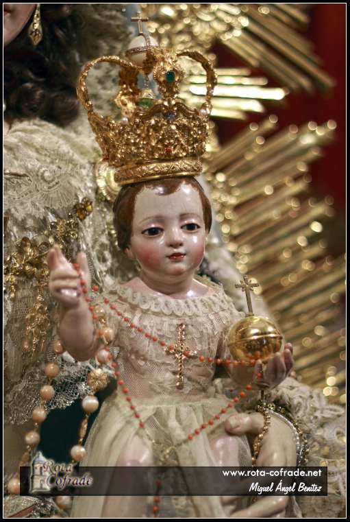 La Virgen luce la corona rocalla y puñal de plata.