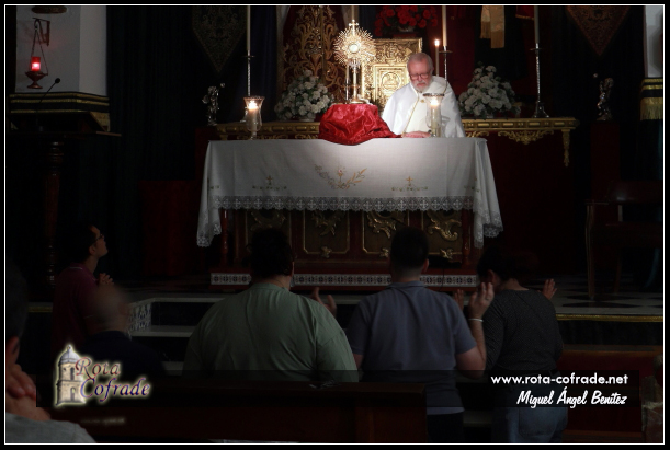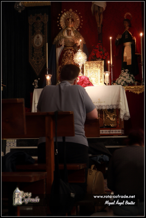 ROTA COFRADE.- El pasado viernes, 10 de octubre, a las 19:30 horas, la Capilla de San Roque acogió un hermoso momento de adoración eucarística con motivo del Año de Gracia por el 300º Aniversario del Santísimo Cristo de la Vera-Cruz.