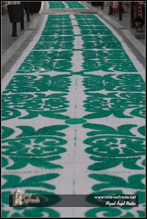 El Consejo Local de Hermandades y Cofradías organizó el montaje de una alfombra de sal para el paso de la procesión por el último tramo de Calle Castelar y García Sánchez, donde participaron diferentes miembros de los grupos jóvenes de las Hermandades y Cofradías de la Villa y que fue realizada con más de 7000 kilos de sal. Este año destacaba el verde y blanco, con motivo del Año Jubilar de la Esperanza y con motivo del 300º Aniversario del Santísimo Cristo de la Vera-Cruz, además de coincidir con los antiguos colores que vestía la Santísima Virgen: manto verde y saya blanca.