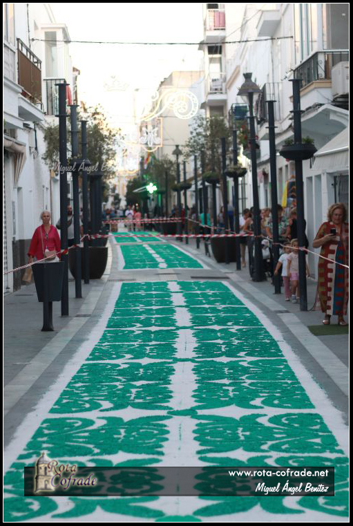 ROTA COFRADE.- El Consejo Local de Hermandades y Cofradías ha informado que, como tributo de amor a Ntra. Sra. del Rosario Coronada, Patrona de la Villa, el próximo lunes 6 de octubre, a partir de las 16:00 horas, los grupos jóvenes de las Hermandades de Rota realizarán el montaje de una alfombra de sal para el paso de la procesión por la calle Alcalde García Sánchez.