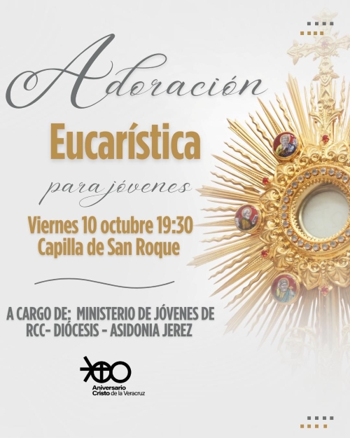 La oración fue guiada por el Rvdo. D. Diego Vidal Ros, diácono y hermano de la Hermandad de la Vera-Cruz y el Ministerio de Jóvenes de la Renovación Carismática Católica (RCC) de la Diócesis de Asidonia-Jerez, quienes, con sencillez y fervor, ayudaron a los presentes a encontrarse con el Señor en la Eucaristía. Los cantos y las oraciones propiciaron un ambiente de profunda intimidad con Cristo además de hacer vivir un momento de oración en este Año de Gracia como un tiempo de renovación espiritual, de encuentro personal con Dios, y de crecimiento en la fe y en el amor fraterno.