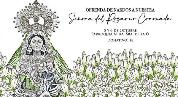 ROTA COFRADE.- La Antiquísima, Real y Venerable Hermandad del Rosario está celebrando la tradicional Solemne Novena en honor a Nuestra Señora del Rosario Coronada, desde el domingo 28 de septiembre hasta el lunes 6 de octubre, en el templo parroquial de Ntra. Sra. de la O, iniciándose con el rezo del Santo Rosario a las 19:30 horas, ejercicio de la Novena y Santa Misa a las 20:00 horas.
