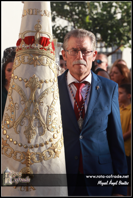 El cortejo estaba conformado por la Dama Mayor y las Damas del Rosario, representaciones del Grupo de Scout Santo Domingo Savio, Asociación y Archicofradía de María Auxiliadora, Agrupación parroquial de Ntra. Sra. de la Merced, y Hermandades y Cofradías de penitencia, gloria y sacramental de la O, ordenadas por su antigüedad; además del Consejo Local de hermandades, cofrades de la Hermandad del Rosario portando bandera de la Hermandad, Simpecado escoltado por hachetas dándole luz, libro de reglas, estandarte y varas. Además, participaron representantes de la Policía Nacional (ASACRO), Guardia Civil y Policía Local.