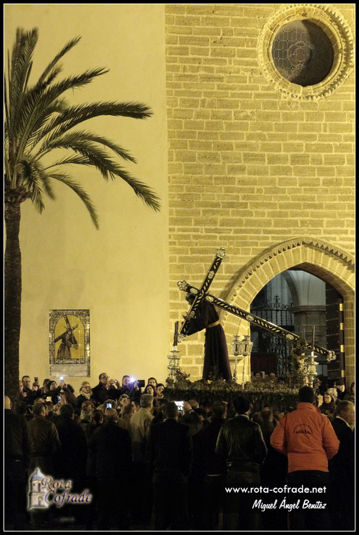 La salida tuvo lugar a las 18:30 horas desde la Parroquia de Ntra. Sra. de la O, recorriendo Plaza de Bartolomé Pérez, Plazoleta del Padre Eugenio, Pérez de Bedoya, Plaza Barroso, Pedro de la O, Bachiller (Izda.), Pozo de la Villa, Álvaro Méndez, Plaza de Andalucía, Rosario, Castelar, Plaza de San Roque, Alcalde García Sánchez, Prim, Higuereta, Arco de Regla, Fermín Salvochea, Constitución, Cuna, Plazoleta del Padre Eugenio, Plaza de Bartolomé Pérez para, antes de la recogida, tuvo lugar un espectáculo pirotécnico desde el Castillo de Luna.