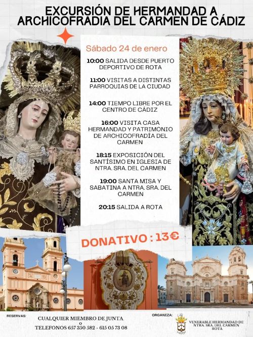 -Hermandad del Rosario: 13.381. Por privado a través de la cuenta de Facebook o a través del teléfono 634 00 06 42.