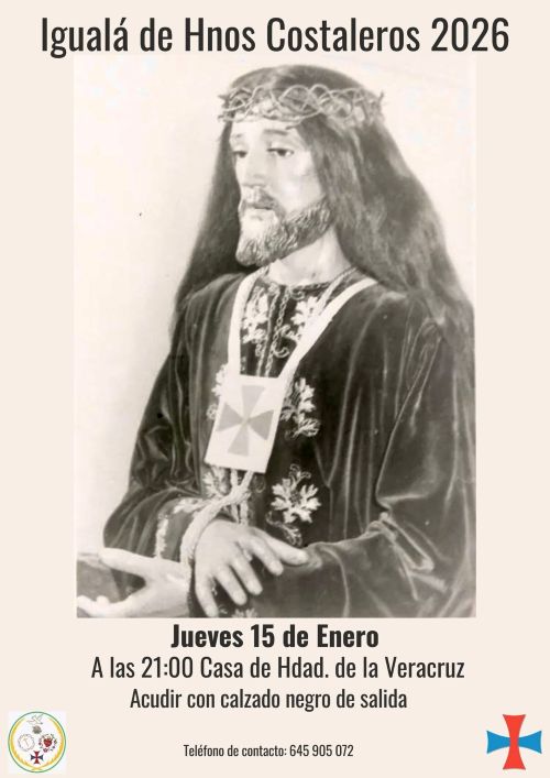 8-1-2026.- RECUERDEN: ESTE SÁBADO SERÁ LA IGUALÁ DE LA CUADRILLA DE COSTALEROS DE MARÍA SANTÍSIMA DE LAS ANGUSTIAS DE LA HERMANDAD DE LA VERA-CRUZ.