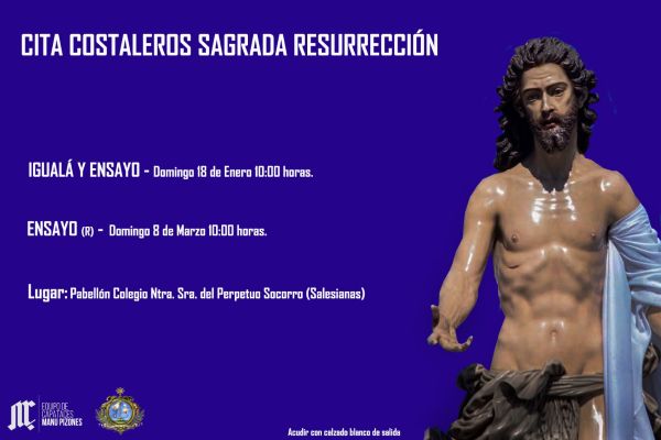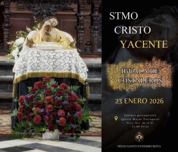 ROTA COFRADE.- La Hermandad del Santo Entierro ha anunciado que la igualá de la cuadrilla de costaleros del Santísimo Cristo Yacente tendrá lugar el próximo viernes 23 de enero, en los salones parroquiales de Nuestra Señora de la O, a las 21:00 horas.
