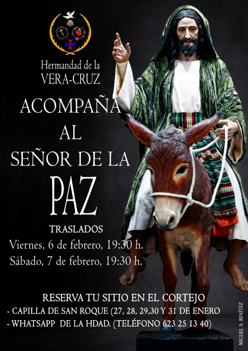21-1-2026.- LOS HERMANOS DE LA VERA-CRUZ QUE DESEEN ACOMPAÑAR A NTRO. PADRE JESÚS DE LA PAZ EN SUS TRASLADOS, LO PODRÁN COMUNICAR DURANTE LOS DÍAS DEL QUINARIO DEL CRISTO.