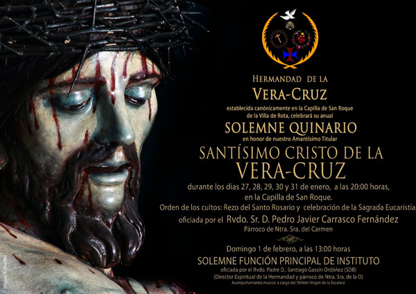 ROTA COFRADE.- La Hermandad de la Vera-Cruz celebrará el tradicional Solemne Quinario en honor del Milagroso Cristo de la Veracruz durante los días 27, 28, 29, 30 y 31 de enero, a las 20:00 horas, en la Capilla de San Roque.
