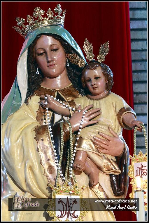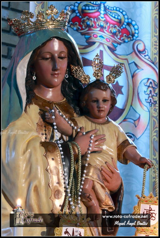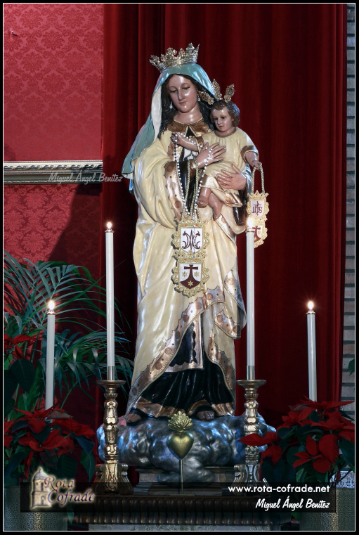ROTA COFRADE.- Tras el tiempo litúrgico de Navidad, la Titular de la Parroquia del Carmen se nos presenta de este modo en el presbiterio del templo parroquial.