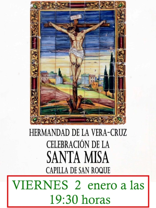 ROTA COFRADE.- Hoy viernes, 2 de enero, a las 19:30 horas se celebrará misa en la Capilla de San Roque, con motivo del Año de Gracia por el 300º Aniversario del Santísimo Cristo de la Vera-Cruz.