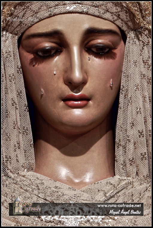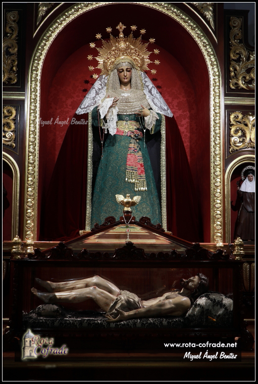 ROTA COFRADE.- Nuestra Señora de la Soledad, Titular de la Hermandad del Santo Entierro, está ataviada para la Festividad de la Candelaria, donde recordamos la Presentación del Niño Jesús en el Templo.