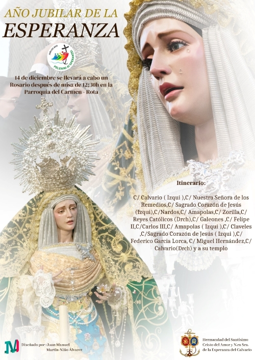 ROTA COFRADE.- La Hermandad del Amor ha comunicado que, en la mañana del pasado jueves 23 de octubre, fue aprobado por parte del Obispado de Asidonia-Jerez, la salida extraordinaria de Nuestra Señora de la Esperanza en rosario como colofón al Año Jubilar de la Esperanza.