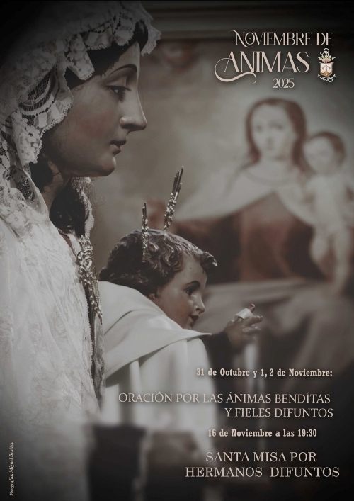 "El mes de noviembre se dedica de manera especial a los fieles difuntos, tiempo de oración, recogimiento y gratitud por quienes nos precedieron. Así, desde hace siglos, las Hermandades han celebrado misas de réquiem, responsos y ejercicios espirituales por el eterno descanso de sus hermanos y familiares fallecidos para encomendar las almas del Purgatorio y renovar la esperanza cristiana en la vida eterna.
