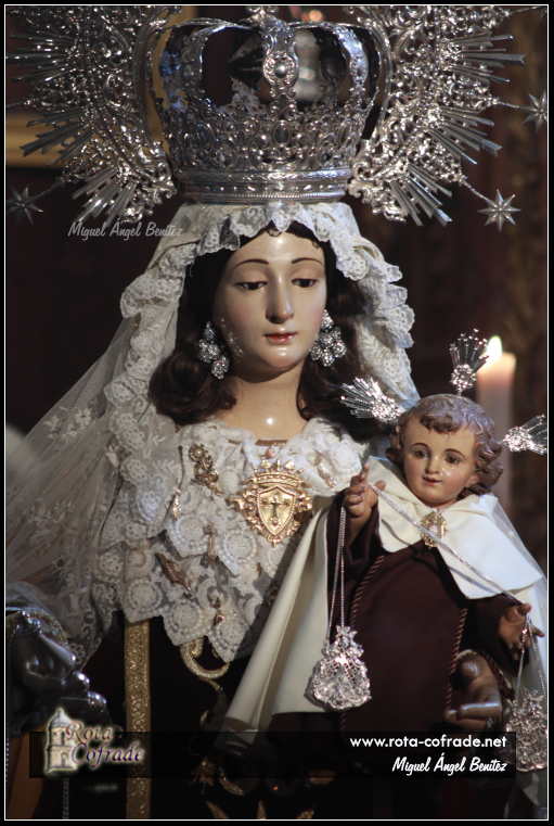 ROTA COFRADE.- La Imagen de Ntra. Sra. del Carmen ha sido ataviada para el mes dedicado al Santísimo Rosario. En su honor luce un rosario de plata en su escapulario, símbolo de la unión de dos de las devociones más queridas de la cristiandad.