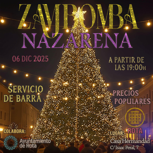 ROTA COFRADE.- El próximo sábado 6 de diciembre, a partir de las 19:00 horas en la calle Isaac Peral (Exterior de la Casa de Hermandad del Nazareno), tendrá lugar la Zambomba Nazarena.