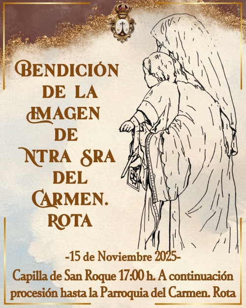 ROTA COFRADE.- La Parroquia de Ntra. Sra. del Carmen consagrará una Solemne Novena en honor de Ntra. Sra. del Carmen con motivo de su llegada la la Parroquia, desde el sábado 15 al domingo 23 de noviembre, a las 19:00 horas (excepto los domingos 16 y 23, que será a las 12:00 horas).