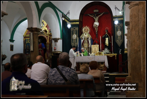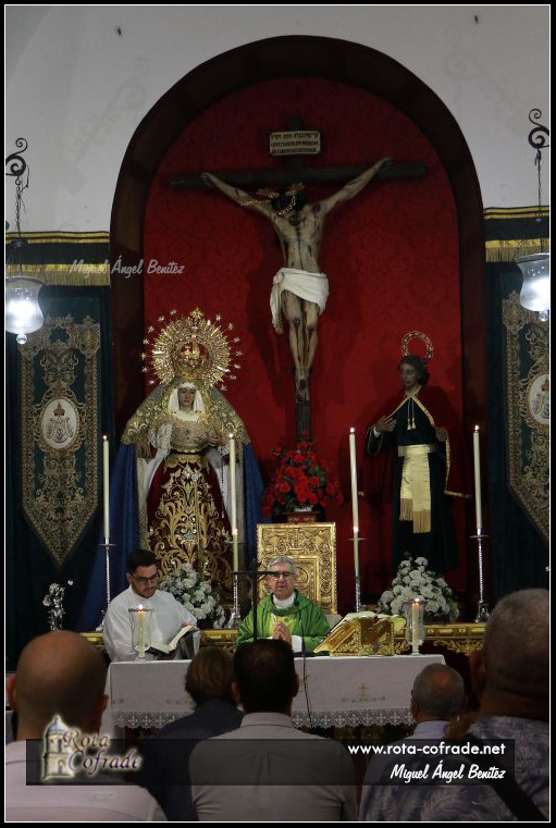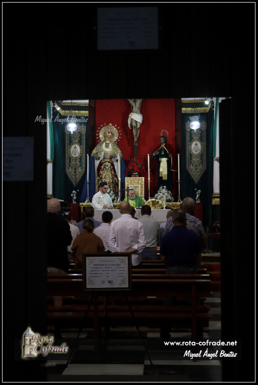 La misa fue oficiada por el Rvdo. Sr. D. Santiago Gassín Ordóñez (Párroco de Ntra. Sra. de la O y director espiritual de la Hermandad).