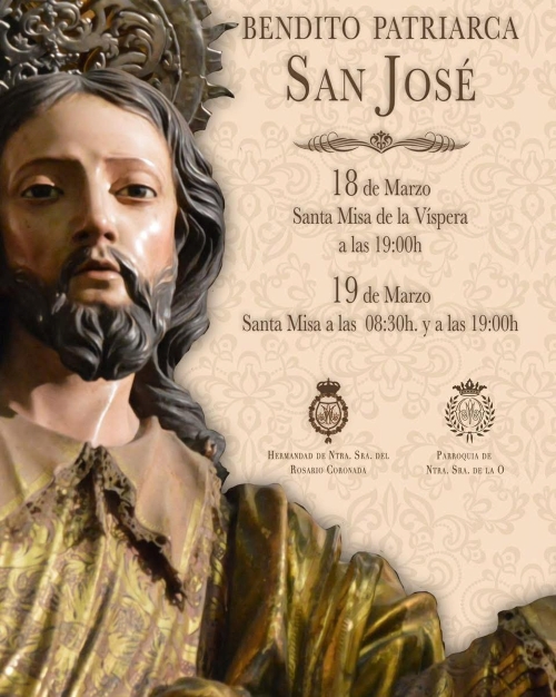 ROTA COFRADE.- La Parroquia de Ntra. Sra. de la O, celebrará el miércoles 18 de marzo, a las 19:00 horas, Santa Misa en las vísperas de la Solemnidad de San José.