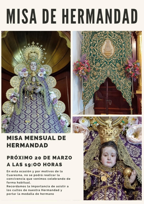 En esta ocasión y por motivos de la Cuaresma, no se podrá realizar la convivencia que la Hermandad realiza de forma habitual al finalizar estos cultos.