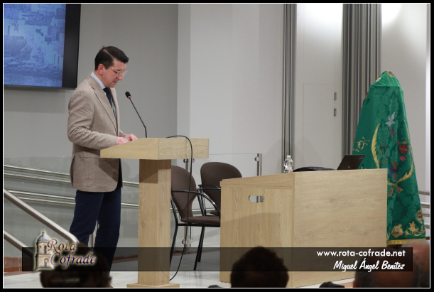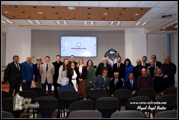 ROTA COFRADE.- El pasado sábado, 7 de marzo, a las 20:15 horas en el Salón de Actos del Palacio Municipal "Castillo de Luna" tuvo lugar la presentación del cartel de la Semana Santa en la Hermandad de la Vera-Cruz 2026, a cargo del archivero de la Hermandad, José Joaquín Arévalo Alonso.