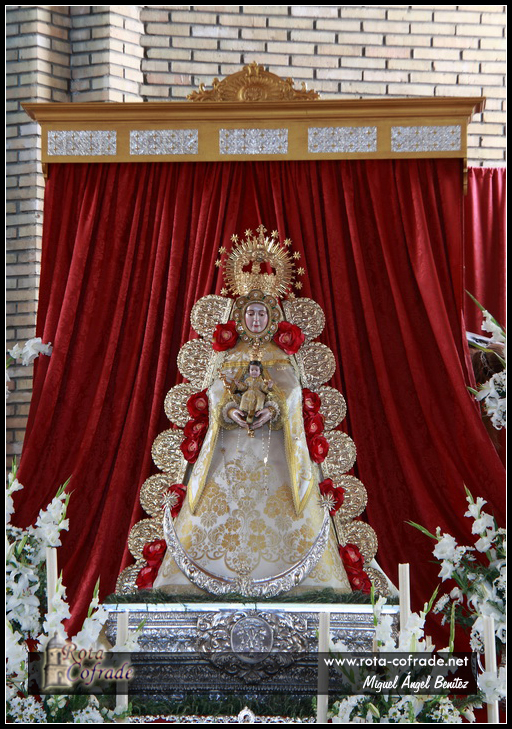 ROTA COFRADE.- Las hermanas camareras de la Virgen del Rocío han realizado un cambio en la vestimenta de la Virgen del Rocío de Rota.