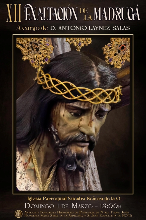 ROTA COFRADE.- La Hermandad del Nazareno celebrará la XII Exaltación de la Madrugá a cargo de Antonio Laynez Salas, el próximo domingo 1 de marzo, a las 13:00 horas, en la Parroquia de Ntra. Sra. de la O.