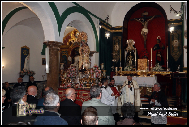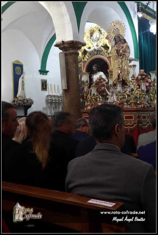 La Virgen ha sido bendecida por el párroco de Ntra. Sra. del Carmen, Rvdo. Sr. D. Pedro Javier Carrasco; contando con la asistencia del párroco de Ntra. Sra. de la O, Rvdo. Sr. D. Santiago Gassín; además de representantes del Consejo Local de Hermandades y Cofradías, de Hermandades de la localidad y de la Asociación del Santo Ángel de Rota (ASACRO), además de una multitud de feligreses de la parroquia del Carmen, y miembros de la Hermandad de la Vera-Cruz que acogieron a los fieles que llenaban la antigua ermita dedicada a San Roque.