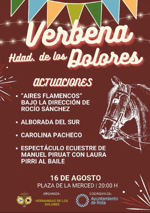 ROTA COFRADE.- La Hermandad del Amor celebrará la Fiesta "Fin de Verano", el próximo 29 de agosto, a partir de las 20:00 horas, en la Plaza de la Merced, siendo la entrada libre, contando con invitados especiales y con la Orquesta BlueSound.