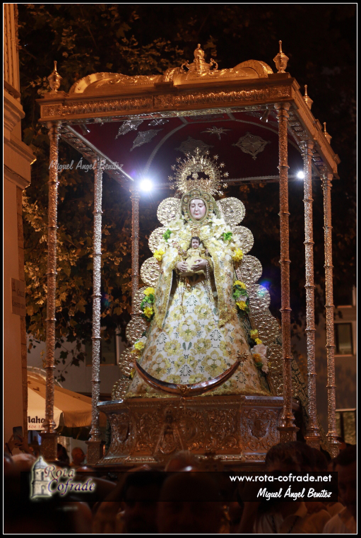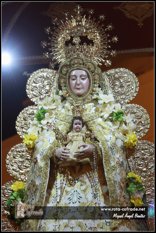Las Imágenes lucían las coronas de oro de la Coronación Canónica, así como la ráfaga dorada del orfebre Seco Velasco y media luna plateada donada por la cuadrilla de costaleros.
