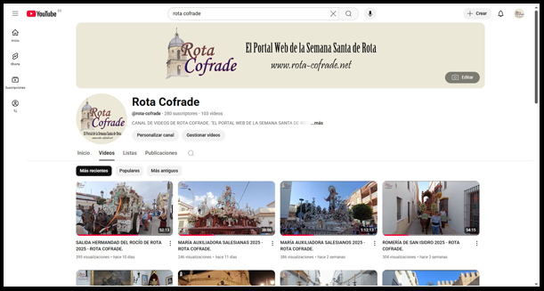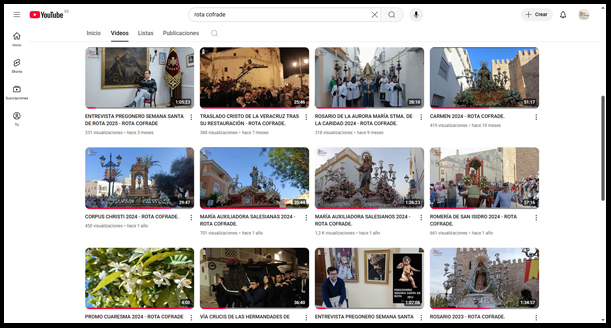No podemos olvidar tampoco su canal de vídeos de Youtube, que cuenta con más de 100 vídeos realizados por este equipo, donde se recogen desde mayo de 2016, todas aquellas salidas procesionales de glorias, así como procesiones extraordinarias que han tenido lugar en nuestra localidad, y también entrevistas realizadas a hermanos mayores, cofrades, sacerdotes, pregoneros, etc.