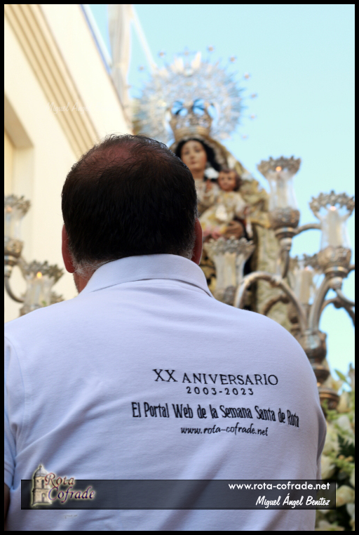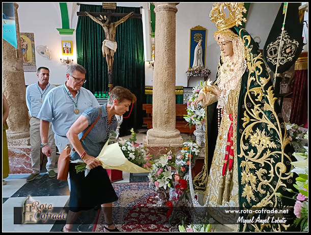 ROTA COFRADE.- El pasado viernes 15 de agosto, tras la Función Solemne de Reglas con motivo de la Solemnidad de la Asunción de la Santísima Virgen, de las 08:45 horas de la mañana, la Hermandad de la Salud celebró el acto de veneración de fieles a María Santísima de la Caridad, Madre del Amor Hermoso.