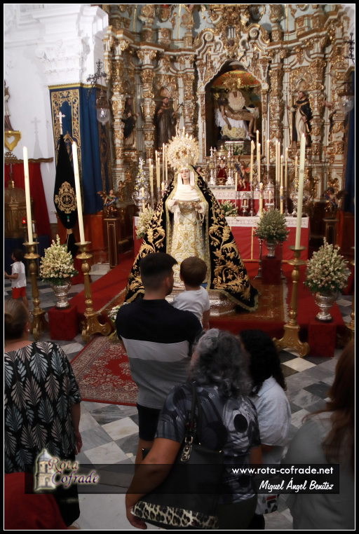 ROTA COFRADE.- El pasado viernes 15 de agosto, en la Capilla de San Roque, tuvo lugar el besamanos a María Santísima de las Angustias con motivo a la Solemnidad de la Asunción de la Virgen. El besamanos continuó el sábado y el domingo, en horario de tarde.