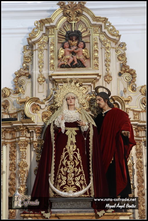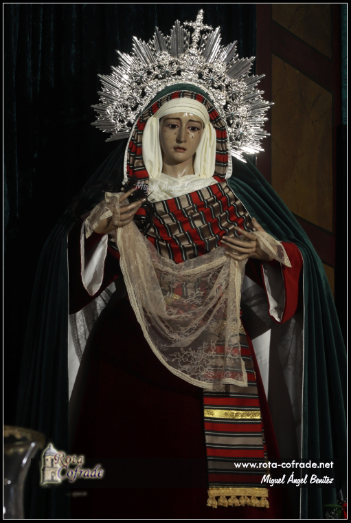 ROTA COFRADE.- Con motivo de la celebración de la Presentación de Jesús en el Templo, se ha llevado a cabo un cambio de vestimenta de la Virgen de los Dolores.