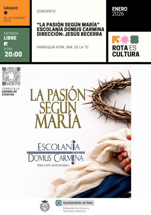 ROTA COFRADE.- La Escolanía "Domus Carmina" de Sevilla ofrecerá el concierto "La Pasión según María", el próximo sábado 28 de febrero, a las 20:00 horas en la Parroquia de Ntra. Sra. de la O, tras concluir la Misa de las 19:00 horas y la salutación sabatina a la Virgen del Rosario.