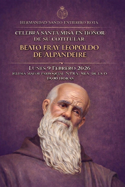 ROTA COFRADE.- La Hermandad del Santo Entierro celebrará Santa Misa en honor de su Cotitular, Beato Fray Leopoldo de Alpandeire, el próximo lunes 9 de febrero a las 19:00 horas, en el templo parroquial de Nuestra Señora de la O.