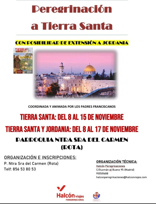 ROTA COFRADE.- La Parroquia de Ntra. Sra. del Carmen ha organizado una Peregrinación a Tierra Santa (con posibilidad de extensión a Jordania) coordinada y animada por los Padres Franciscanos.