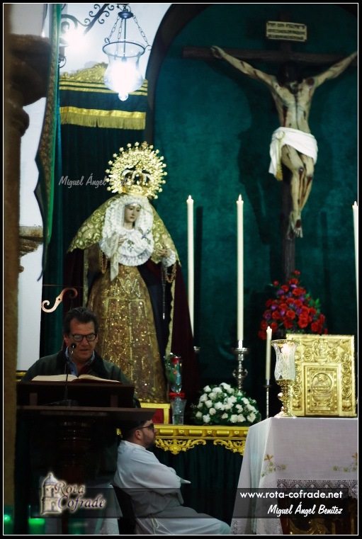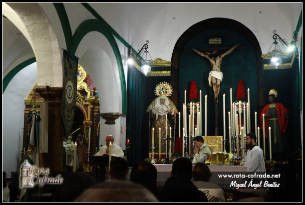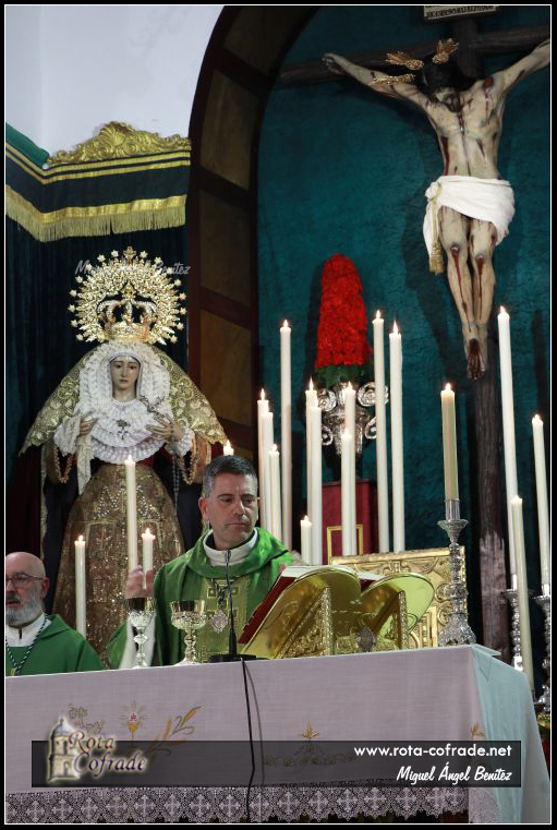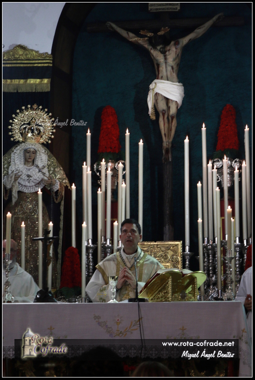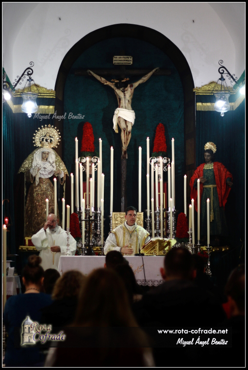 El mismo ha dado comienzo a las 20:00 horas con el rezo del Santo Rosario y celebración de la Sagrada Eucaristía celebrada por el hermano crucero Rvdo. Sr. D. Pedro Javier Carrasco Fernández (Párroco de Ntra. Sra. del Carmen de Rota) y contando con la capilla musical del Coro Parroquial de Ntra. Sra. del Carmen.