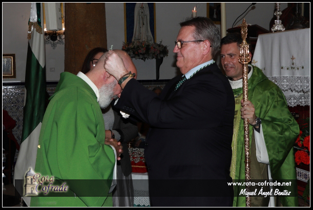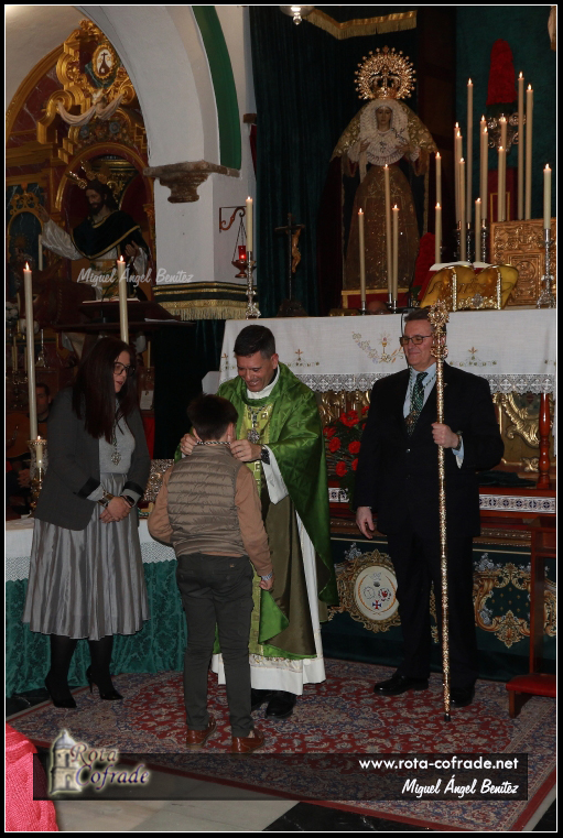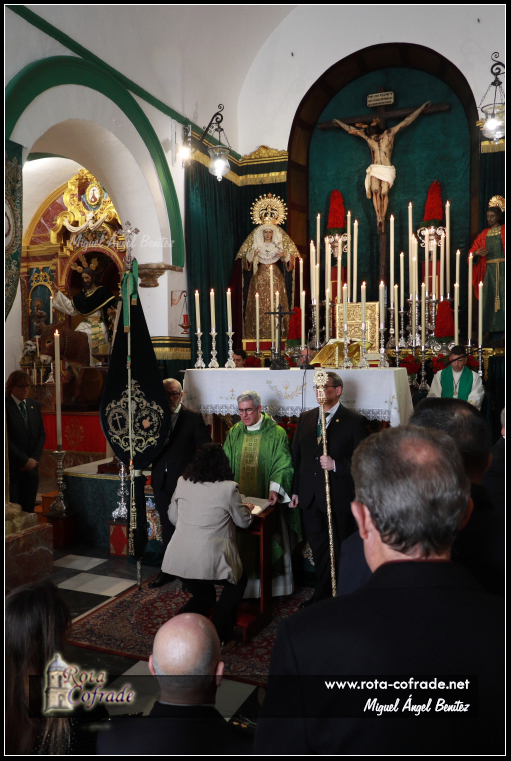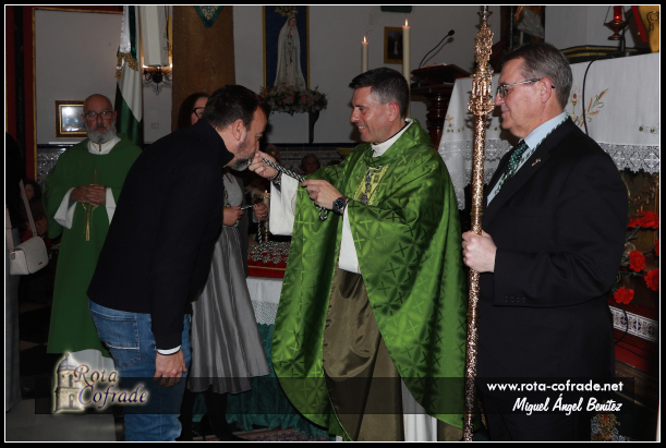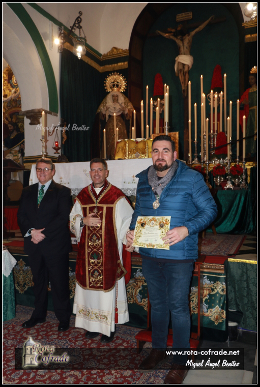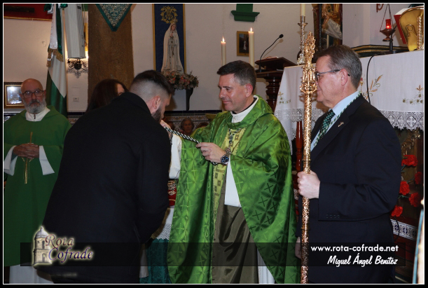 Durante la celebración eucarística de este último día, la Hermandad de la Vera-Cruz recibió canónicamente a los nuevos hermanos, a los que el sacerdote y hermano crucero Rvdo. Sr. D. Pedro Javier Carrasco Fernández (Párroco de Ntra. Sra. del Carmen de Rota) impuso la medalla de la Hermandad más antigua de la Villa.