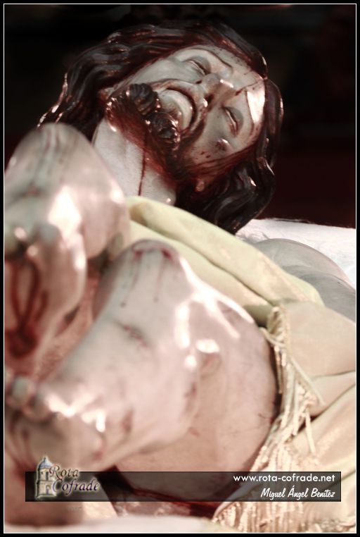 La imagen del Santísimo Cristo Yacente es de talla anónima de mediados del siglo XVIII, según estudios realizados se le podría atribuir a Diego Roldán. La imagen de este Cristo se le daba inicialmente culto como crucificado y posteriormente se le dotó articulaciones en los brazos articulados para representar el descendimiento de Jesucristo. Manuel Guzmán Bejarano restauró la imagen dejándole los brazos fijos en el 1969. Fue restaurada en el año 1999-2000 por el profesor don Juan Manuel Abad Gutiérrez quien realizó una limpieza de la policromía de la imagen y aderezó uno de los dedos que se encontraba fracturado