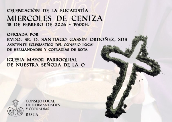 ROTA COFRADE.- El Consejo Local de Hermandades y Cofradías celebrará hoy lunes, 23 de febrero, el Vía-Crucis de Cuaresma de las Hermandades de la localidad que este año estará presidido por la Imagen del Santísimo Cristo Yacente, Titular de la Hermandad del Santo Entierro de Cristo.