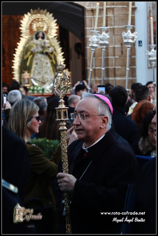 El cortejo recorrió el siguiente itinerario: Plazoleta del Padre Eugenio, Plaza de Bartolomé Pérez, Callejón del Castillo, Fermín Salvochea, Arco de Regla, Higuereta, Prim, Alcalde García Sánchez, Plaza de San Roque, Castelar, Nuestra Señora del Rosario, Plaza de Andalucía, Álvaro Méndez, Pozo de la Villa, Bachiller, Pedro la O, Plaza Barroso, Pérez de Bedoya, Plazoleta del Padre Eugenio, llegando a la Parroquia de la O aproximadamente a las 22:30 horas.
