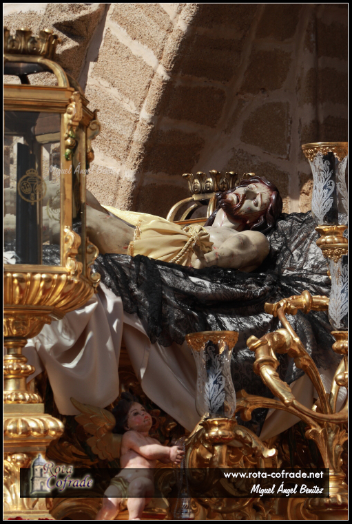 En la delantera de la parihuela, a los pies del Señor, se situaba el ángel que porta la llave de Rota que Miguel Ángel Caballero diseñó por el nombramiento de "Señor de la Villa de Rota", y que fue realizado en el año 2008. El Señor iba iluminado por candelabros guardabrisas cedidos por la Hermandad del Santo Entierro.